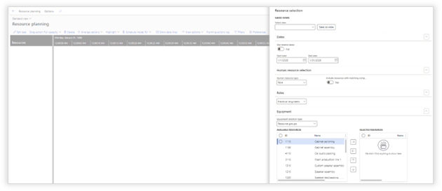 It is possible to open the capacity overview from the simulation planning and understand the impact of the simulated planning on the resource group(s) and resource(s).