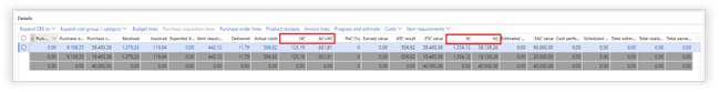 Set the default ETC calculation method according to the PMI standards. Budgeted rate: ETC = Budgeted amount � Earned Value CPI rate: ETC = [Budgeted amount / CPI] � Actual costs CPI and SPI rate: ETC = Remaining commitments: ETC = soft committed + reserved amount Bottom up � Manual: ETC = manually entered |