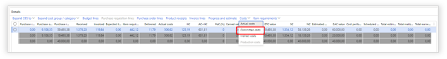Hard committed costs: Production order earned value |